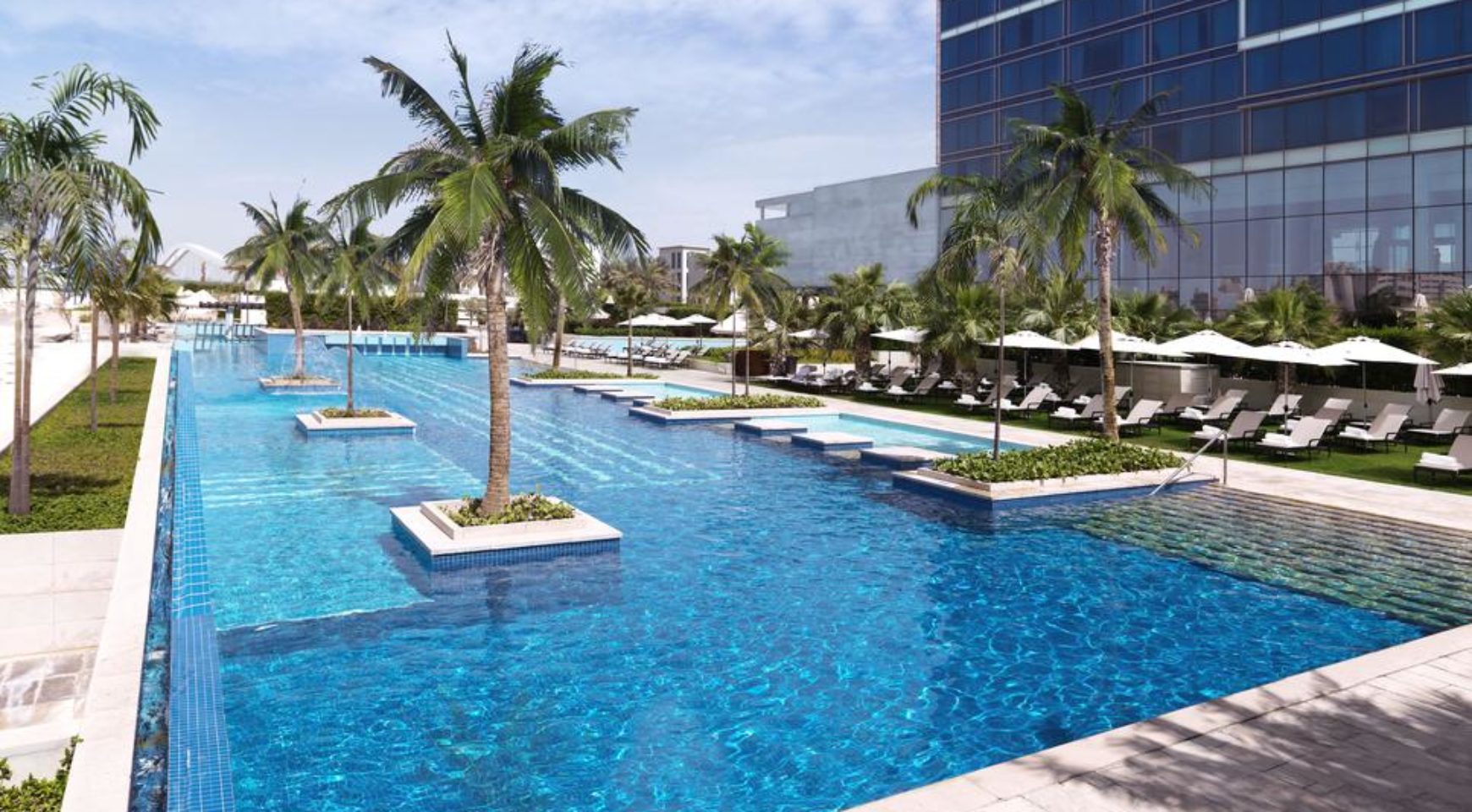All accommodations are beautifully designed in a modern style, with large rooms and bathrooms. Many of the rooms have views of Abu Dhabi Creek and the Sheikh Zayed Grand Mosque.