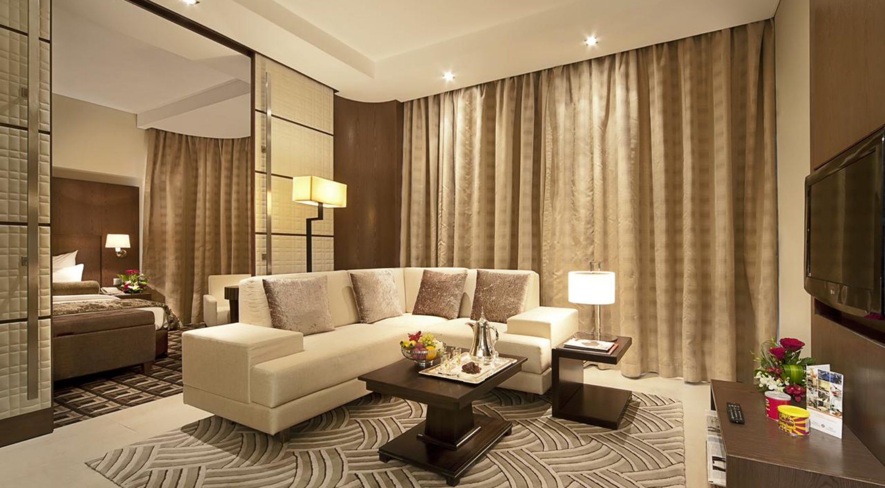 The air-conditioned suites at Oaks Liwa feature a modern interior, decorated in warm, earthy tones. All suites have a flat-screen TV with satellite channels, a minibar, and tea and coffee making facilities.