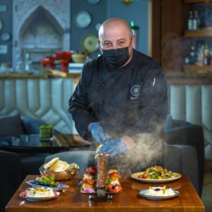 Diners will be able to enjoy an impressive 700 grams of kofta, traditionally prepared and cooked on a meter-long skewer,with a gorgeous selection of Mediterranean vegetables including tomatoes, onions and grilled mushrooms. The kebab, garnished with parsley and fried nuts,is elegantly presented by the restaurant’s highly skilled chefs and servedto guests at their table.